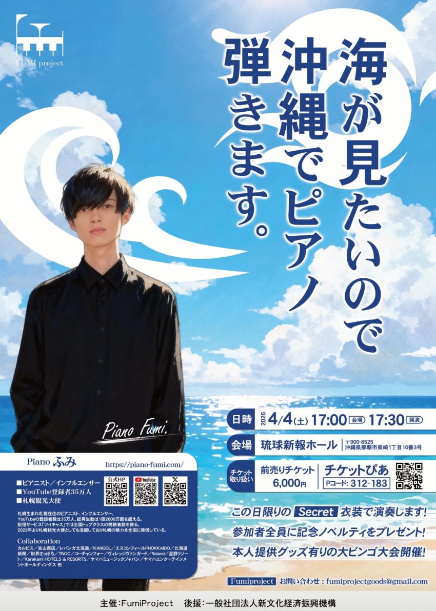 ふみ 海が見たいので沖縄でピアノ弾きます。・開場:17時/開演:17時30分・会場=琉球新報ホール