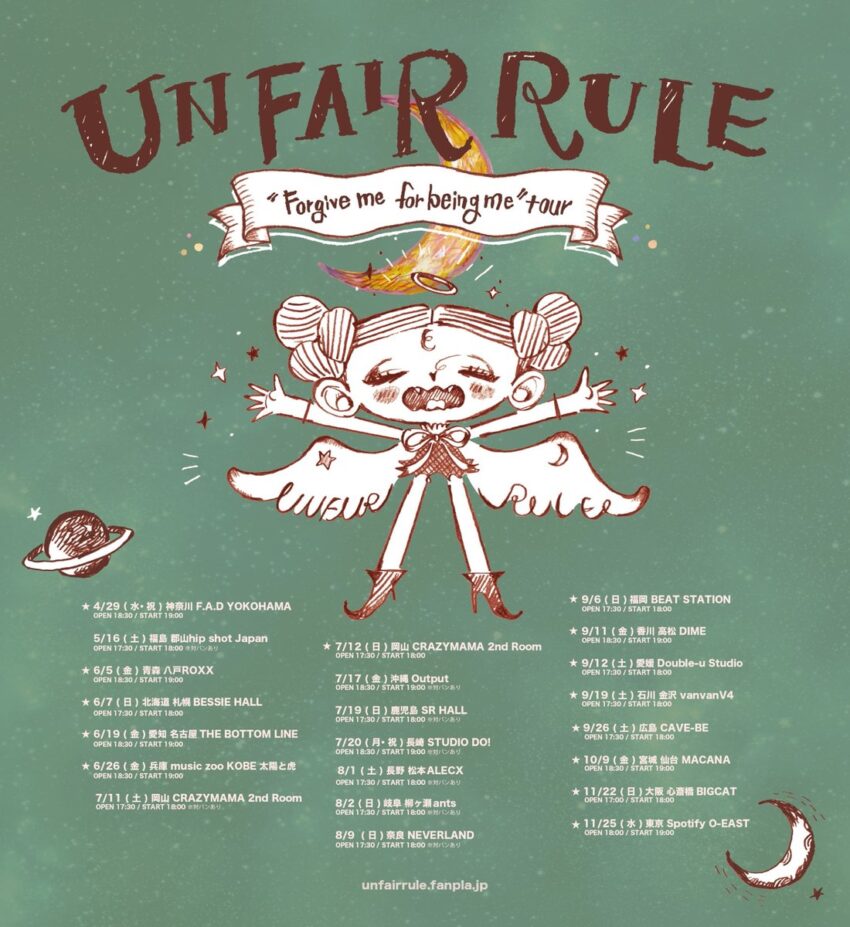 UNFAIR RULE “Forgive me for being me” tour・開場:18時30分/開演:19時・会場=ライブハウスoutput